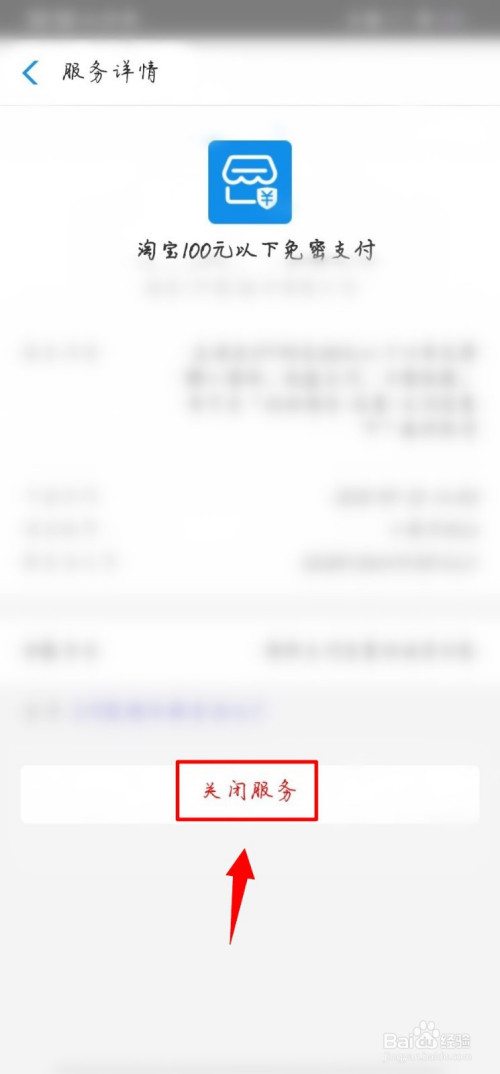 下一步,在【小额免密支付】页面中点击下方的【封闭办事】。