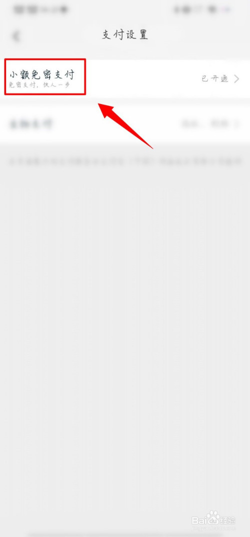 之后,在【支付设置】页面中点击【小额免密支付】。