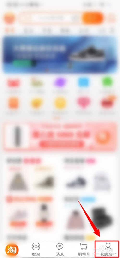 其次,在淘宝首页点击右下方【我的淘宝】。