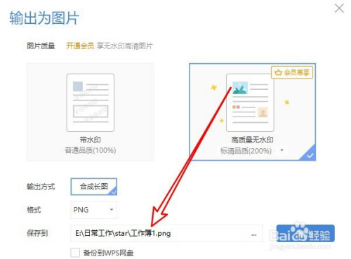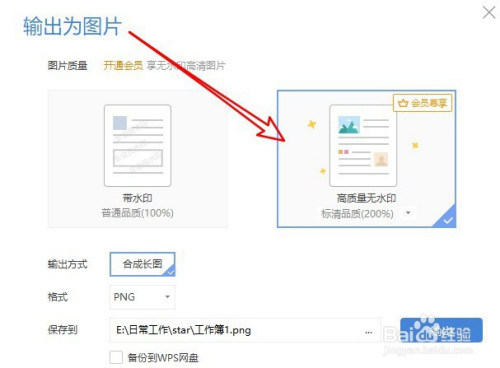 接着在打开的输出为图片窗口选择高质量无水印的图标。