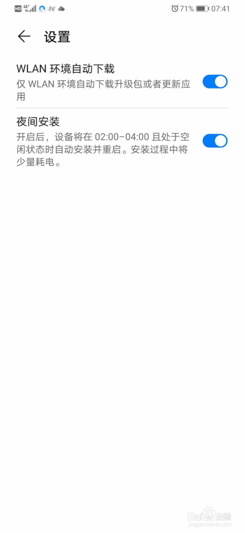 点击之后,会进入到一个设置选项傍边,此中有一个就是夜间更新选项。