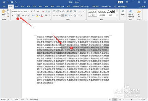 选中此中一部门文字,点击菜单栏【起头】-【下划线】。