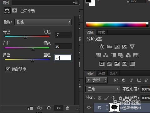 在属性面板中色调下拉列表中选择暗影选项,并设置暗影色阶数值-7/26/23。最后结果如下。