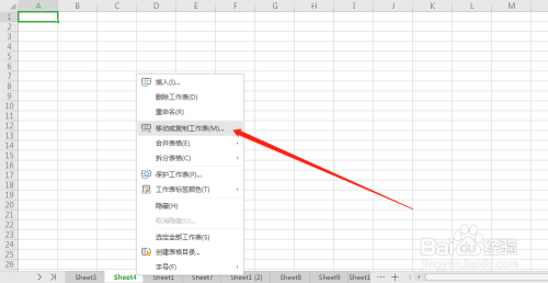 移动工作簿,鼠标右击,点击移动和复制工作表。