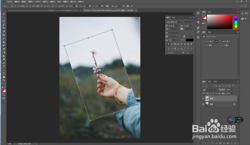 利用快捷键ctrl+T自由变换,并调整相框选区的角度。