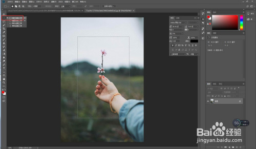 回到左侧东西栏,选择矩形选框东西,画出相框的选区。