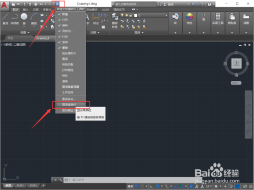 然后点击显示菜单栏。