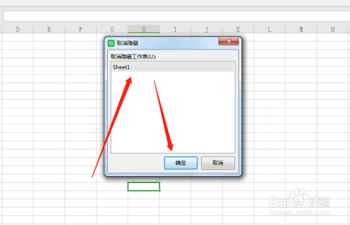 埋没工作表,选中Sheet1,然后确定就可以了。