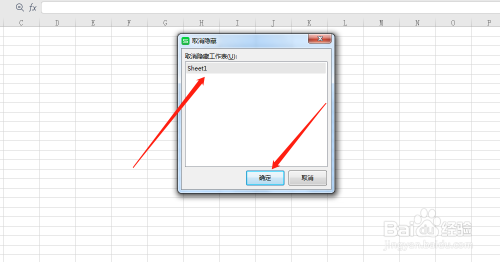 埋没工作表,选中Sheet1,然后确定就可以了。