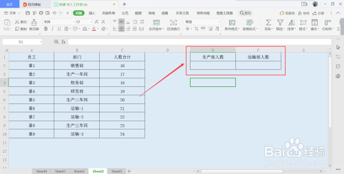 打开数据表后,在表格中添加新的列“出产部人数”、“运输部人数”,用于存放计较成果;
