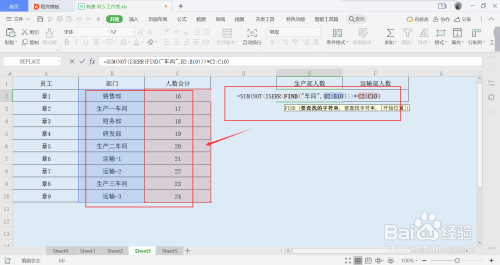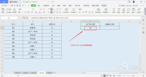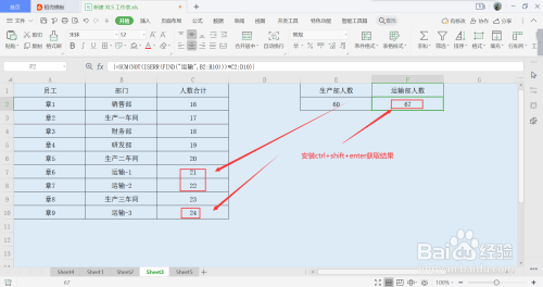 完当作公式输入后,经由过程快捷键ctrl+shift+enter获取成果,至今生产部人数就统计出来了;