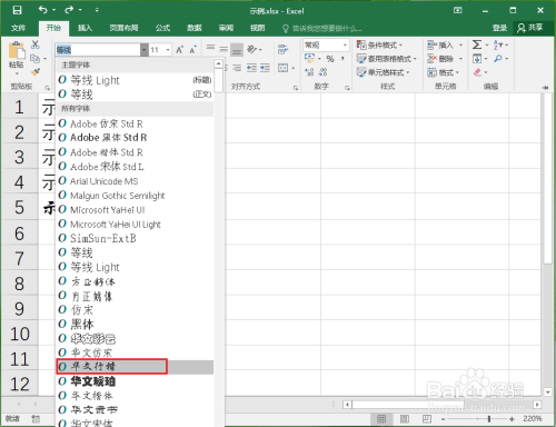 鄙人拉列表中选择需要的字体,例如“汉文行楷”。