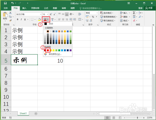 ●在弹出的下拉列表中选择“红色”。