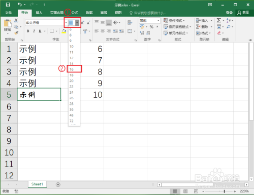 ●在弹出的下拉列表中选择“16”。