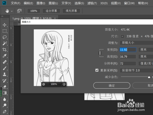 依次执行如下操作,点击图像-图像大小,将图像的标准放大10倍;