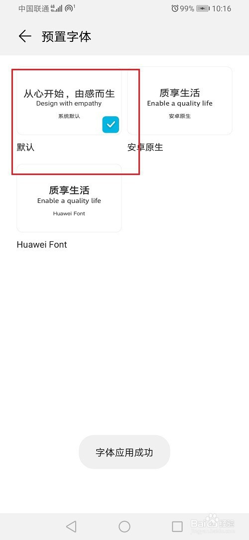 第五步选择默认之后,就恢复华为手机默认字体了,按照需要利用