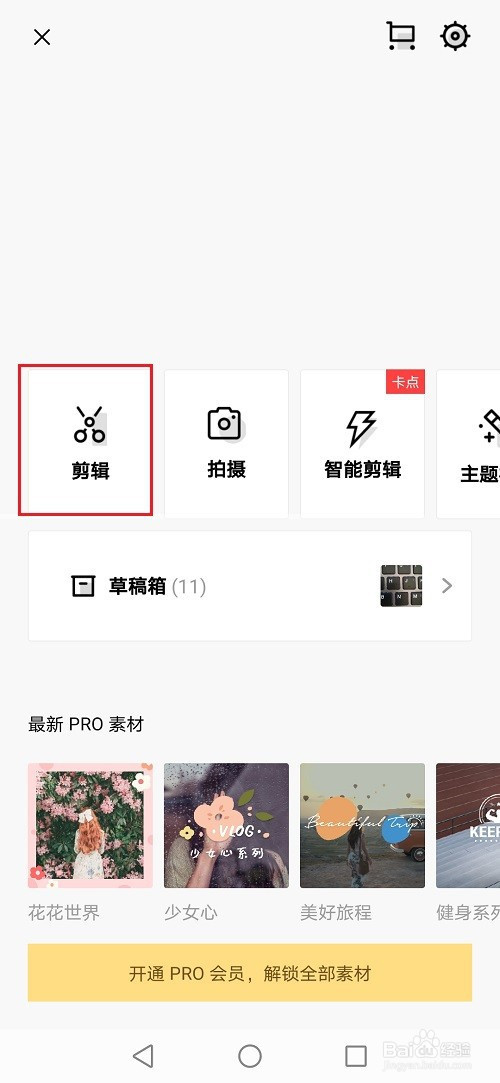 第二步进去vue vlog拍摄界面之后,点击剪辑