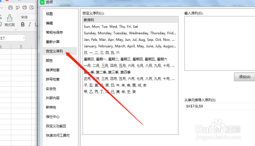 设置自界说序列,点击“自界说序列”。