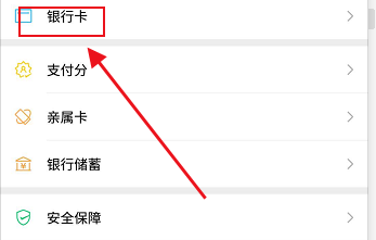 第五步,点击银行卡选项。