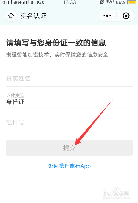 然后输入本身的身份信息后,点击提交。