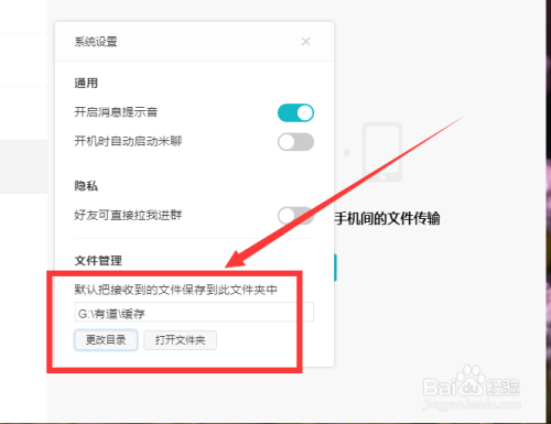 进入系统设置,找到文件办理,点击更改目次。