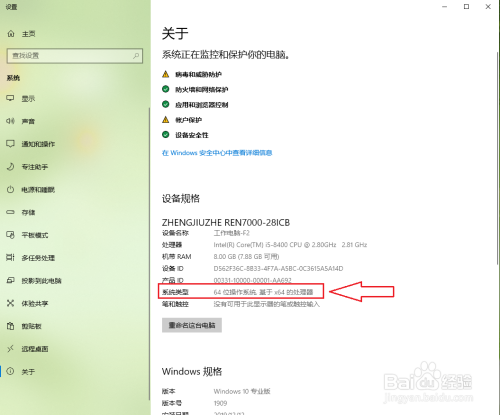 在“操作系统”右侧就可以看到系统是32位仍是64位。