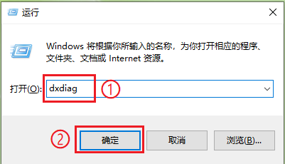 在对话框里输入"dxdiag",然后点击【确定】。