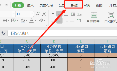 点击【东西栏】中的【数据】