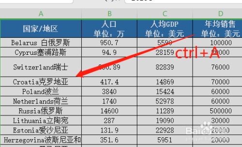 快捷键【Ctrl+A】全选【数据】
