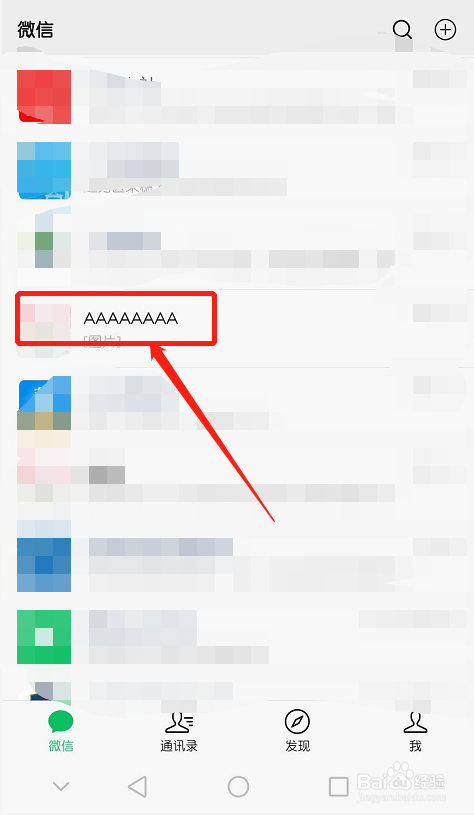 在手机中打开微信。找到需要标识表记标帜的老友。点击进入。