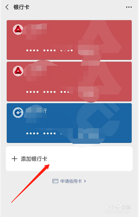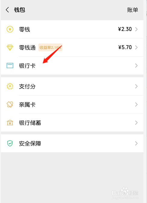 进入新页面,点击“银行卡”。