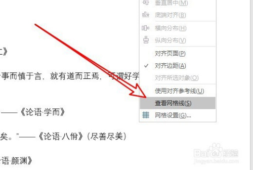 在弹出的对齐下拉菜单中点击查看网格线的菜单项。