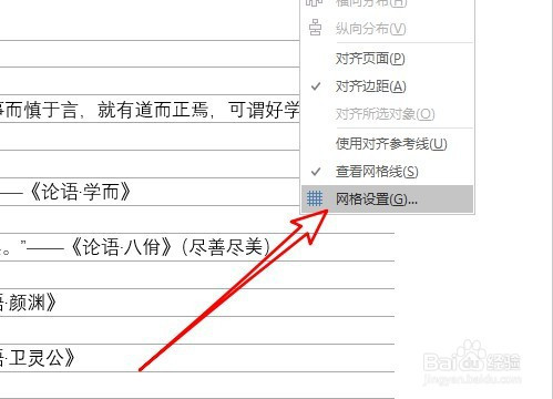 若是要设置网格线,右键点击文档的网格线,选择弹出菜单中的网格设置菜单项。