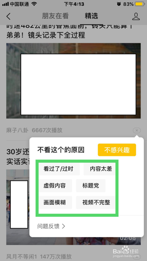 4.接下来,在保举的精选内容的右下角点击打叉按钮
