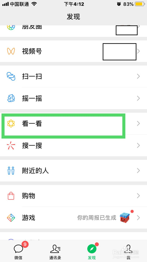 3.接着,在发现界面点击看一看按钮