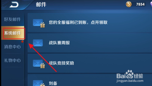 第一步,首先打开“王者荣耀”游戏,点击“系统邮件”。