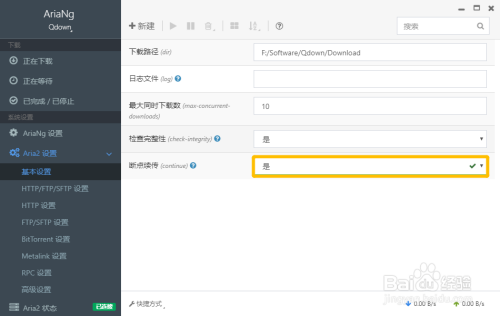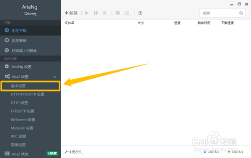 点击睁开左下方的“Aria2 设置”选项后,在睁开的下拉框中选择“根基设置”选项。