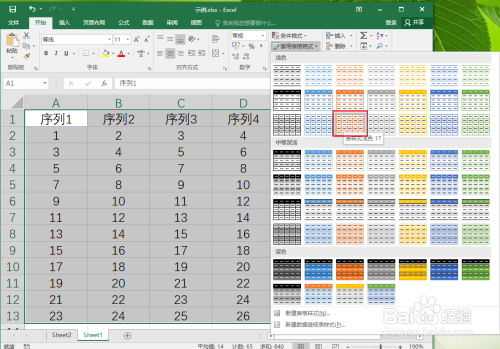 注重:套用格局后的表格会添加主动筛选器,便利用户筛选表格中的数据。