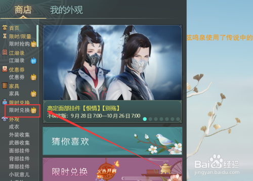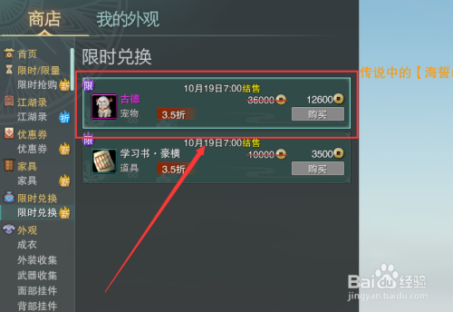 进入商铺界面后,点击列表左侧的【限时兑换】选项。