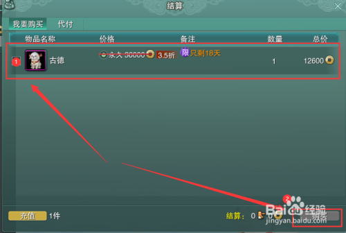 最后在结算界面选中要结算的【古德】,并点击右下角【采办】按钮,支付当作功后我们就获得了宠物【古德】啦~
