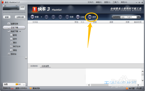 在“快车”本家儿界面中,点击上方的“选项”图标。