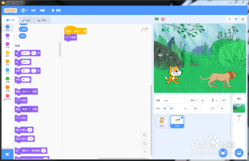 挪用声音模块,选择播放猫的声音,如图所示。