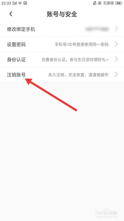 进入到账号与平安界面后,我们再点击刊出账号选项即可。