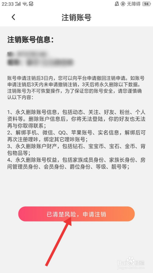 进入到刊出账号界面后,我们再阅读相存眷销提醒,无贰言后点击已清晰风险,申请刊出即可。