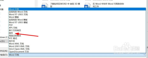 选择一个文件夹位置,将文件类型选择为“网页”。