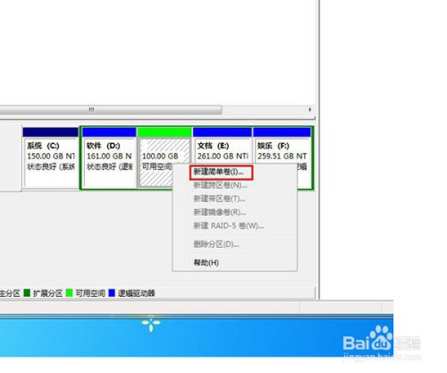 选择适才压缩出来的分区,右击鼠标,选择右键菜单中的“新建简单卷”。