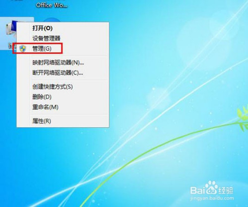 在桌面上找到“计较机”,在图标上面右击鼠标,在右键菜单中选择“办理”。