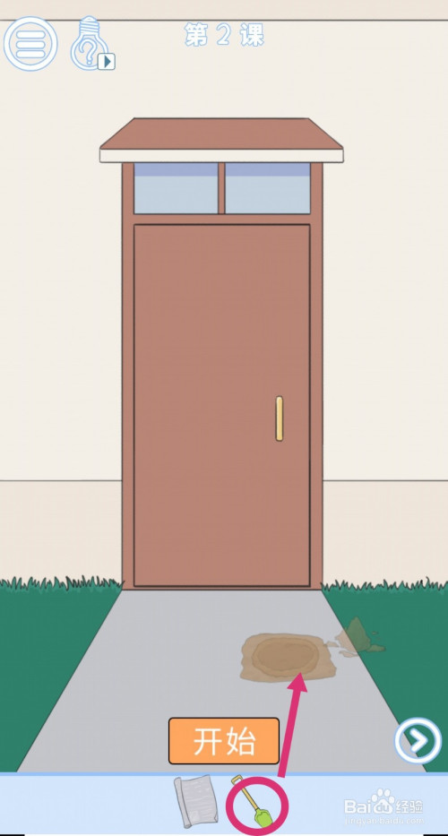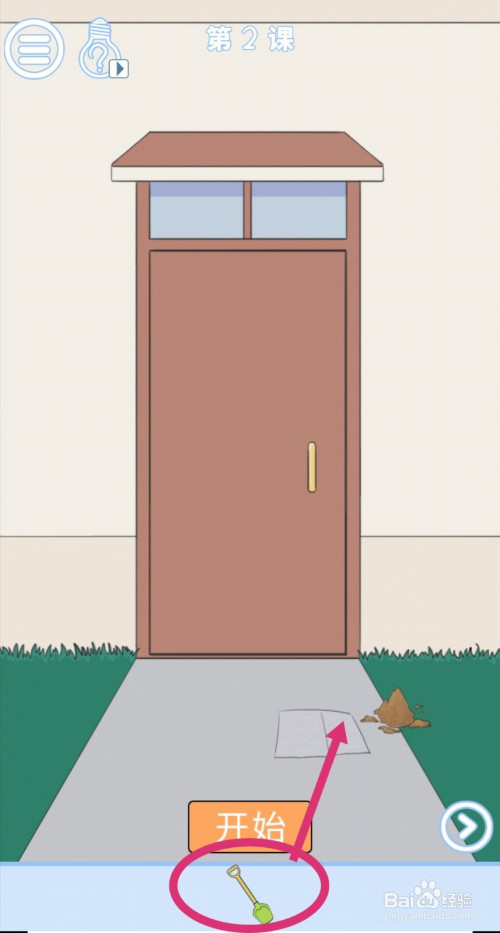 点击拖动【铲子】,用铲子挖开门口的洞,再用【报纸】铺在上面。