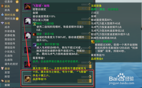 然后在坐骑栏面前目今面,左键选中【飞霞骠·破阵】。