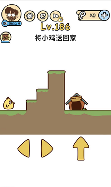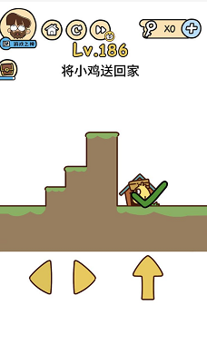 《脑洞大大大》关卡186:将小鸡送回家。谜底操作方式:一向按住左边偏向键,让小鸡走回家。
